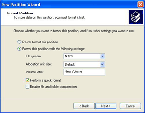 Ultima ventana es una confirmación de todas opciones escogidas; haga clic próximo completar la división y formatear de maneja. Después que formatear es completado, el maneja será accesible de "mi computadora" |