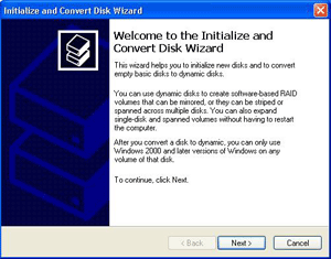 El clic correcto en el área cuadrada izquierda donde un icono rojo redondo con una línea por el centro es y escoge “inicializa” (XP) O “escribe firma” (Win2k). |
